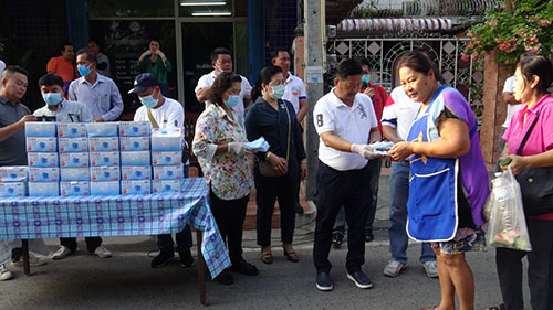 ที่บริเวณหลังสวนสาธารณะเทศบาลเมืองพนัสนิคม อำเภอพนัสนิคม จังหวัดชลบุรี นายประมวล เอมเปีย อดีต ส.ส.ชลบุรี พร้อมด้วยนางเรณู เอมเปีย ภรรยา ได้ร่วมกันแจกหน้ากากอนามัย ให้กับประชาชน ที่มารอรับกันตั้งแต่ช่วงเช้า นับ 1,000 คน เพื่อนำไปป้องกันไวรัส โควิค 19 กำลังแพร่ระบาดในขณะนี้ โดยจะมีการแจกไปอย่างต่อเนื่อง ตลอดทั้งวัน จนกว่าหน้ากากอนามัย จำนวน 6,000 ชิ้นจะหมด