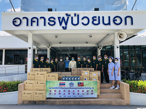 นอกจากนี้ ยังมอบให้ตัวแทนทีมข่าวสายเจาะบ้านบึง ประกอบไปด้วย 1.ชุด PPE 200 ชุด 2.หน้ากาก N95 450 ชิ้น 3.Face Shield 100 ชิ้น เพื่อให้นำไปแจกจ่ายอาสาสมัครกู้ภัยในพื้นที่จังหวัดชลบุรีตามความเหมาะสมและเดินทางไปให้มอบให้โรงพยาบาลบ้านบึง ซึ่งมีคณะแพทย์และพยาบาลร่วมกันรับมอบ ประกอบไปด้วย 1.ชุดPPE 700 ชุด 2.Isolation gown 1,000 ชิ้น 3.ถุงเท้า 200 ชิ้น 4.หน้ากากอนามัย 5,000 ชิ้น 5.หน้ากาก N95 2,160 ชิ้น 6.Face Shield 200 ชิ้น สำหรับวัตถุประสงค์ในการมอบครั้งนี้ เพื่อเป็นการสนับสนุนบุคลากรทางการแพทย์รวมทั้งเจ้าหน้าที่ที่ออกปฏิบัติหน้าที่ในการช่วยเหลือประชาชนเป็นการป้องกันโควิด-19 ไม่ให้เข้าสู่ร่างกายและเป็นการตอบแทนแผ่นดินไทยที่ให้ชาวใต้หวันได้เข้ามาทำธุรกิจจนประสบผลสำเร็จ