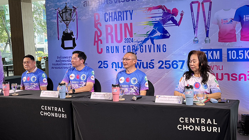 ที่ลานกิจกรรม ชั้น 1 ศูนย์การค้าเซ็นทรัล ชลบุรี นายวิทยา คุณปลื้ม นายกองค์การบริกหารส่วนจังหวัดชลบุรี พันเอกประเสริฐ ใจกล้า รองผู้บัญชาการมณฑลทหารบกที่ 14 นายพีระ สุนทรวัฒน์ รอง ศึกษาธิการจังหวัดชลบุรี ดร.ปัทมา คุณสืบพงษ์พันธ์ นายกสมาคมโรงเรียนเอกชน จังหวัดชลบุรี ร่วมกันแถลงข่าวงานวิ่งการกุศล ชิงถ้วยพระราชทานจาก สมเด็จพระกษิษฐาธิราชเจ้า กรมสมเด็จพระเทพรัตนราชสุดาฯ สยามบรมราชกุมารี ประจำปี 2567 ซึ่งจัดขึ้น โดยมีวัตถุประสงค์เพื่อสมทบทุนซื้ออุปกรณ์เครื่องทางการแพทย์ให้กับโรงพยาบาลในจังหวัดชลบุรี ที่จะช่วยให้มีเพียงพอในการใช้บริการของผู้ป่วย ตลอดจนเป็นการสนับสนุนการจัดการศึกษาภาคเอกชนตามนโยบายการพัฒนาศึกษาแห่งชาติ ที่มุงสู่การพัฒนาคุณภาพผู้บริหาร ครู และบุคลากร ให้มีประสิทธิภาพ อีกทั้งเป็นการส่งเสริมประชาสัมพันธ์ภาพลักษณ์ที่ดีด้านการท่องเที่ยวของจังหวัดชลบุรี ให้ได้รู้จักอย่างแพร่หลาย