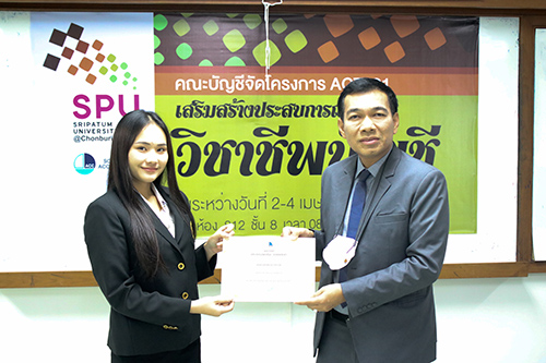 คณะบัญชี มหาวิทยาลัยศรีปทุม วิทยาเขตชลบุรี จัดโครงการเสริมสร้างประสบการณ์วิชาชีพบัญชี (ACT 491) วิทยากรโดยคุณมาฆวัน ตมิมพงษ์ นักตรวจสอบภาษีชำนาญการพิเศษ ,คุณสิริอร ปิติธีรภาพ นักตรวจสอบภาษีชำนาญการ โดยวัตถุประสงค์เพื่อส่งเสริมให้นักศึกษาได้มีประสบการณ์ตรงจากการทำงานในสถานประกอบการที่เป็นจริง ซึ่งจะเป็นแนวทางให้สามารถพัฒนาตนเองให้เหมาะสมก่อนที่จะออกไปประกอบอาชีพในสาขาวิชาต่างๆ ได้ดียิ่งขึ้น สามารถนำความรู้ที่ได้จากที่เรียนมา ทางทฤษฎีไปประยุกต์ใช้ในทางปฏิบัติในสภาพของการทำงานจริง เป็นการส่งเสริมให้การเรียนรู้ภาคทฤษฎีมีประสิทธิภาพยิ่งขึ้นและเพื่อให้นักศึกษาได้มีโอกาสศึกษาปัญหาจากการทำงานและวิธีแก้ไขปัญหาจากประสบการณ์ในการทำงาน ทั้งนี้ยังได้รับเกียรติจาก ผู้ช่วยศาสตราจารย์ ดร.จิรพงษ์ จันทร์งาม รองคณบดีคณะบัญชี เป็นประธานกล่าวปิดโครงการและมอบวุฒิบัตรแก่นักศึกษาที่ผ่านการอบรม ณ ห้อง 812 อาคาร ดร.สุข-มาลินี พุคยาภรณ์ มหาวิทยาลัยศรีปทุม วิทยาเขตชลบุรี ในวันอาทิตย์ที่ 4 เมษายน 2564 //// อนุพัฒน์ เพชรอำไพ(โบ๊ท) สำนักงานประชาสัมพันธ์และการตลาด ม.ศรีปทุม ชลบุรี