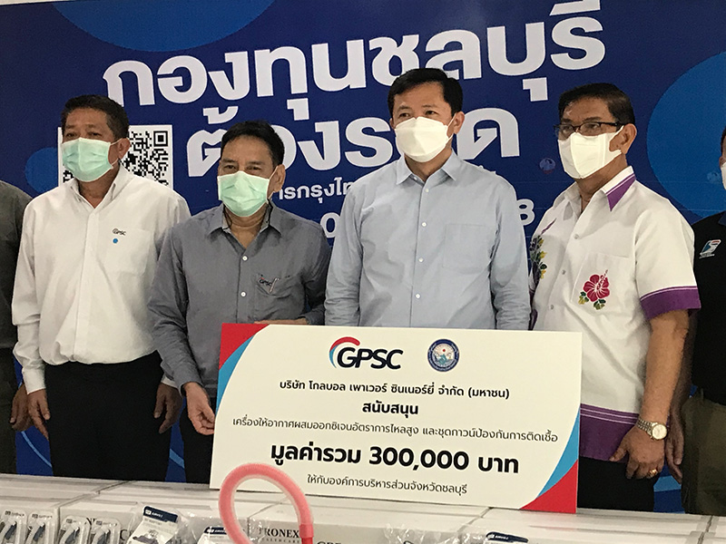 ที่องค์การบริหารส่วนจังหวัดชลบุรี นายวิทยา คุณปลื้ม นายกองค์การบริหารส่วนจังหวัดชลบุรี ในฐานะประธานกองทุนชลบุรีต้องรอด เป็นตัวแทนรับมอบเครื่องให้อากาศผสมออกซิเจนอัตราการให้สูง และชุดทาวน์ป้องกันการติดเชื้อ มูลค่า 3 แสนบาท จากทางนายณรงค์ชัย วิสูตรชัย ผู้จัดการฝ่ายอาวุโสรัฐกิจสัมพันธ์และกิจการสาธารณะบริษัทโกลบอล เพาเวอร์ซินเนอร์ยี่ จำกัด (มหาชน ) เพื่อนำไปมอบให้กับโรงพยาบาลต่างๆ ในจังหวัดชลบุรี ไว้ใช้กับผู้ป่วย และบุคลากรทางการแพทย์ ในช่วงสถานการณ์โควิด – 19 ที่ยังมีการระบาดอย่างต่อเนื่อง